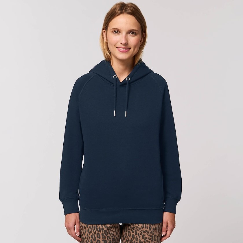 Unisex-mallinen huppari sivutaskuilla. Ekologisen hupparin materiaalina on 85% luomupuuvilla ja 15% kierrätyspolyesteri. Kangas kestää käyttöä ja pesua erinomaisesti.