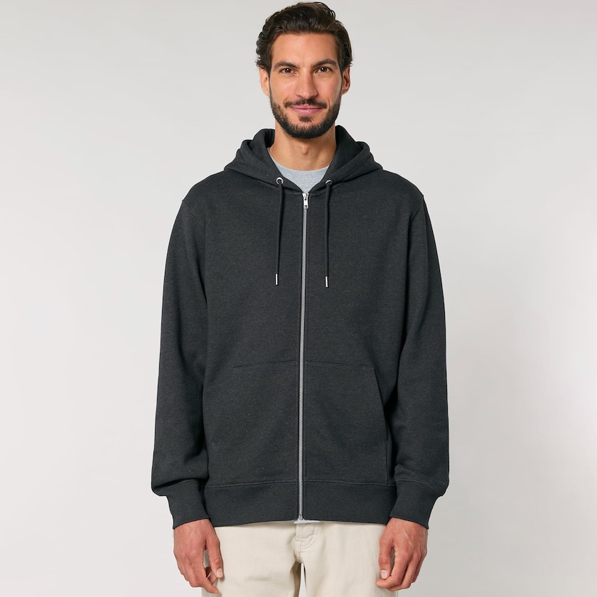 Ympäristöystävällinen vetoketjullinen huppari miehille ja naisille. Materiaalina 100% luomupuuvilla.