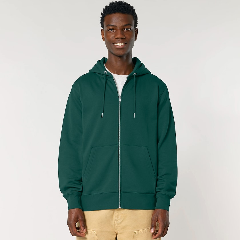 Ympäristöystävällinen vetoketjullinen huppari miehille ja naisille. Materiaalina 100% luomupuuvilla.