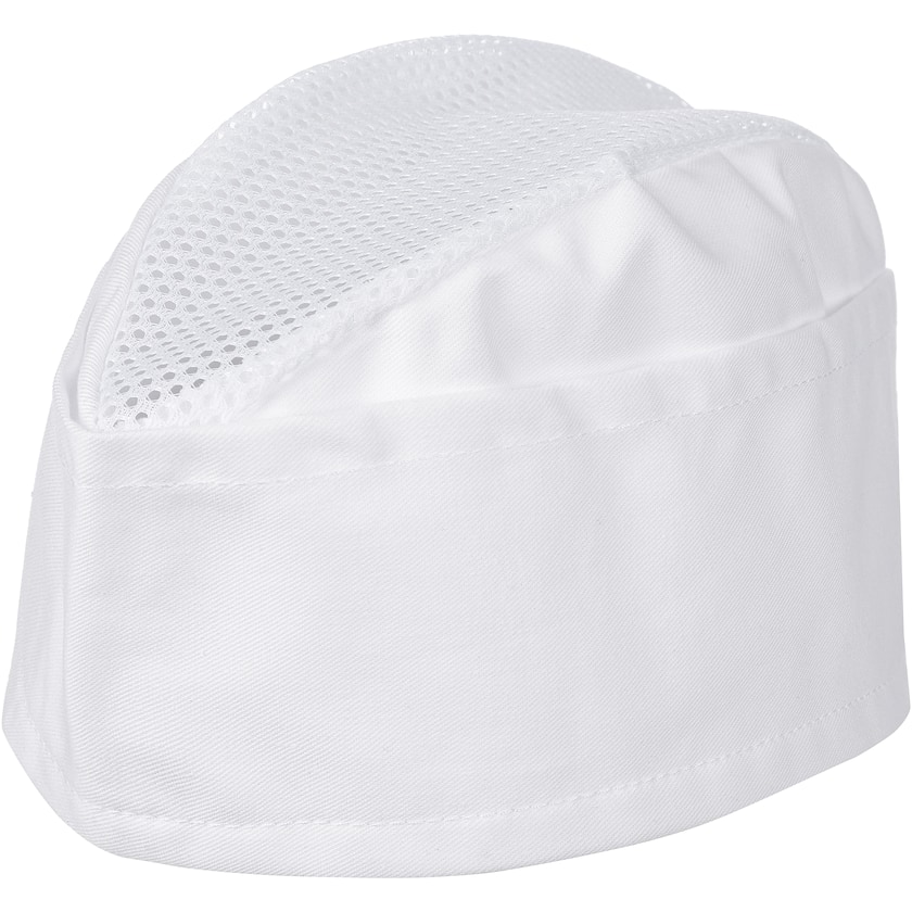 Klassinen leipurin lakki. Lakki on sivuilta puuvillaa ja yläpuolen verkko-osa on polyesteria. Valkoisen päähineen voi pestä 60 asteessa ja mustan 40 asteessa.