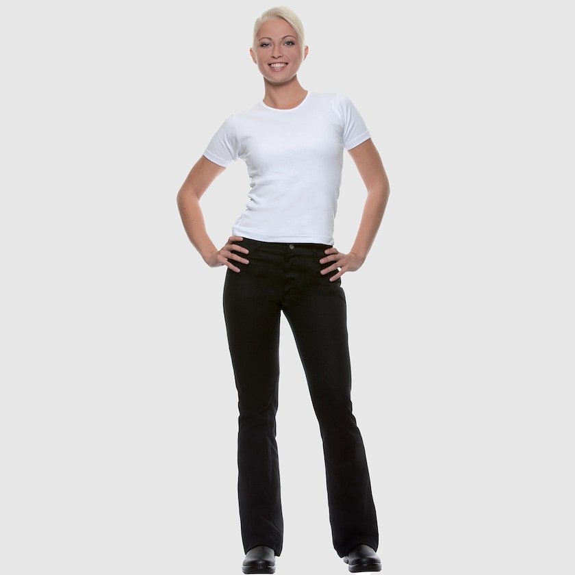 Naisten kokin housut easy care-kankaasta. Valkoiset housut voi pestä 90 asteessa ja mustat 60 asteessa. Saatavilla myös miesten mallina. Valkoiset housut voi pestä 90 asteessa ja mustat 60 asteessa. Saatavilla myös miesten mallina.