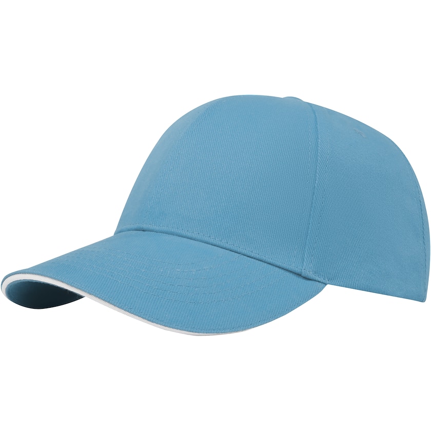 Sporttinen lippalakki kierrätyspuuvillasta. Lakin lipassa on tehosteraita. Takana metallisolki, jonka avulla voi säätää kokoa. Kangas on 50% kierrätyspuuvillaa ja 50% puuvillaa.