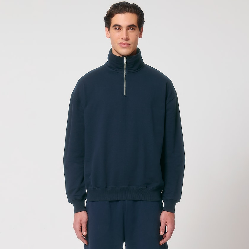 Collegepusero, jossa on korkea kaulus vetoketjulla. Paidassa on set-in-sleeve, ja se on valmistettu luomupuuvillasta. Saatavilla useissa tyylikkäissä väreissä.