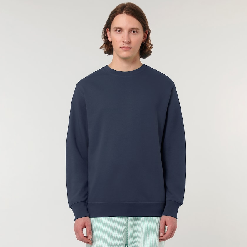 Unisex-mallin collegepaita ympäristöystävällisestä kankaasta. Kangas painaa 300 g/m² ja on valmistettu 85 % luomupuuvillasta ja 15 % kierrätetystä polyesterista.