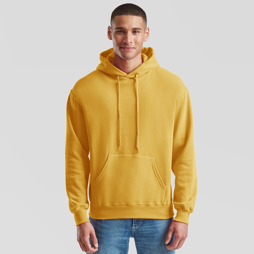 Klassinen huppari merkiltä Fruit of the Loom. Tuotteet toimitetaan yksittäispakattuina muovipusseihin. Saatavilla myös naisten mallina.