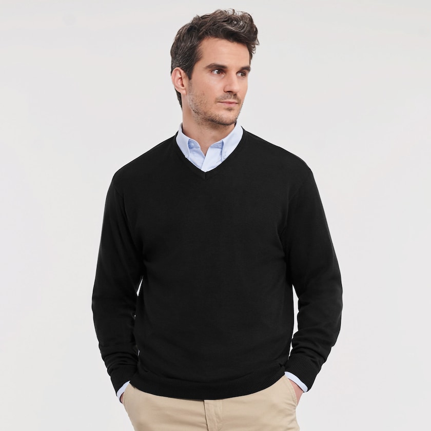 Miesten elegantti neulepaita. Paidassa on v-kaula-aukko ja se on valmistettu Easy Care -puuvillasekoitteesta, jossa yhdistyvät puuvillan keveys ja akryylin pehmeys. Paita kestää rumpukuivausta ja pesun 40 asteessa. Toimitetaan yksittäispakattuina. Saatavilla myös naisten mallina.