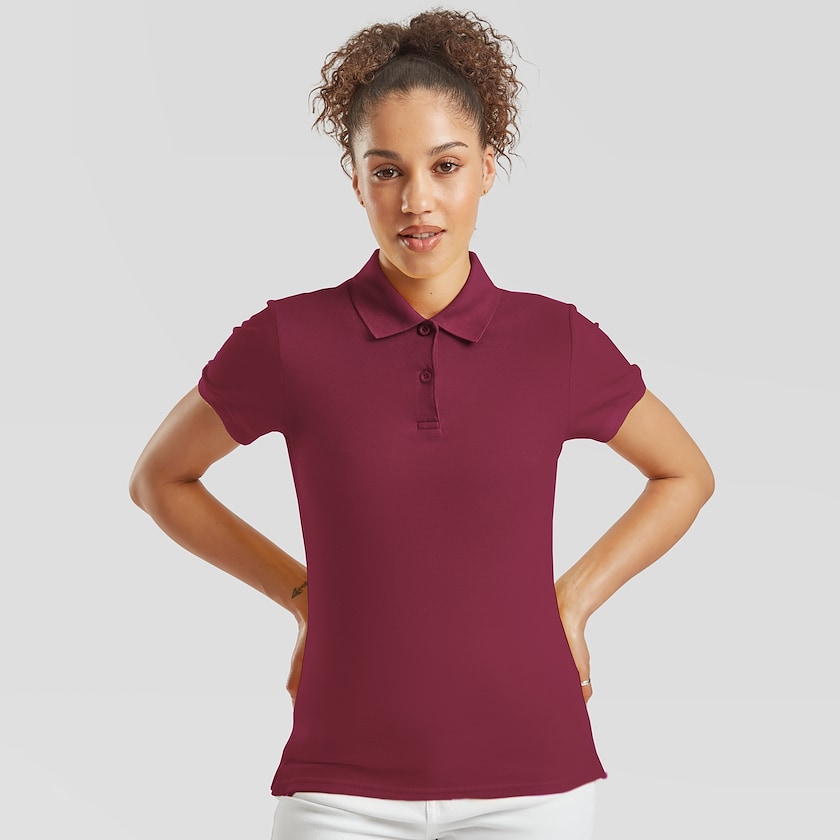 Naisten muotoonommeltu Fruit of the Loom -pikeepaita. FOTL Lady-Fit Premium Polo on valmistettu 100% puuvillasta (180 g/m²). Toimitetaan yksittäispakattuina. Saatavilla myös miesten mallina.