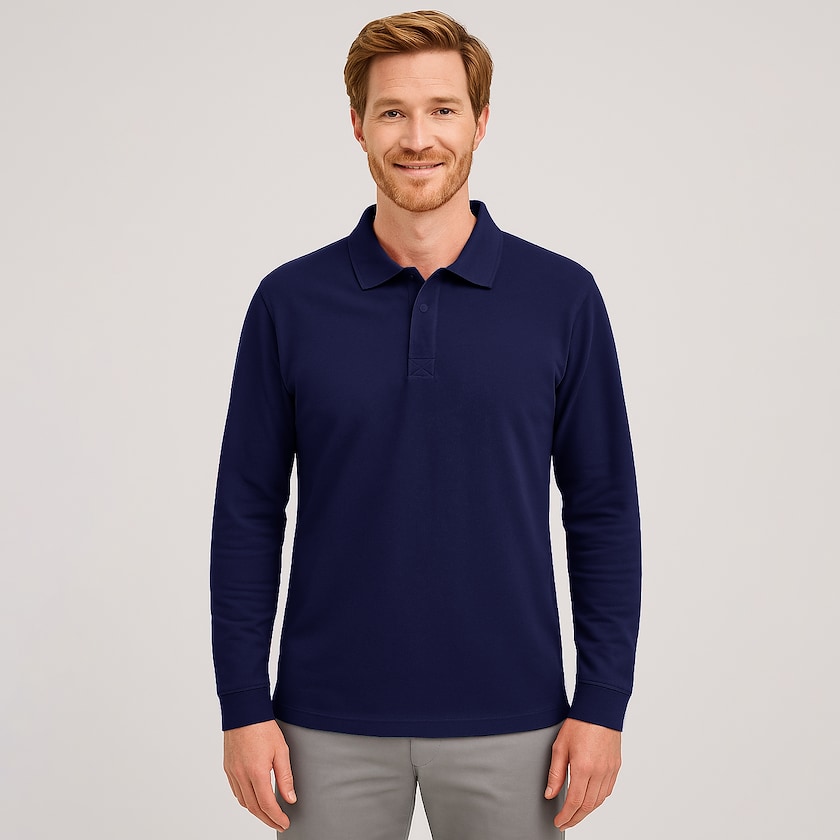 Miesten pitkähihainen pikeepaita painatuksella. Paita on valmistettu kestävästä 200 gramman puuvillakankaasta. Saatavilla myös naisten mallina.