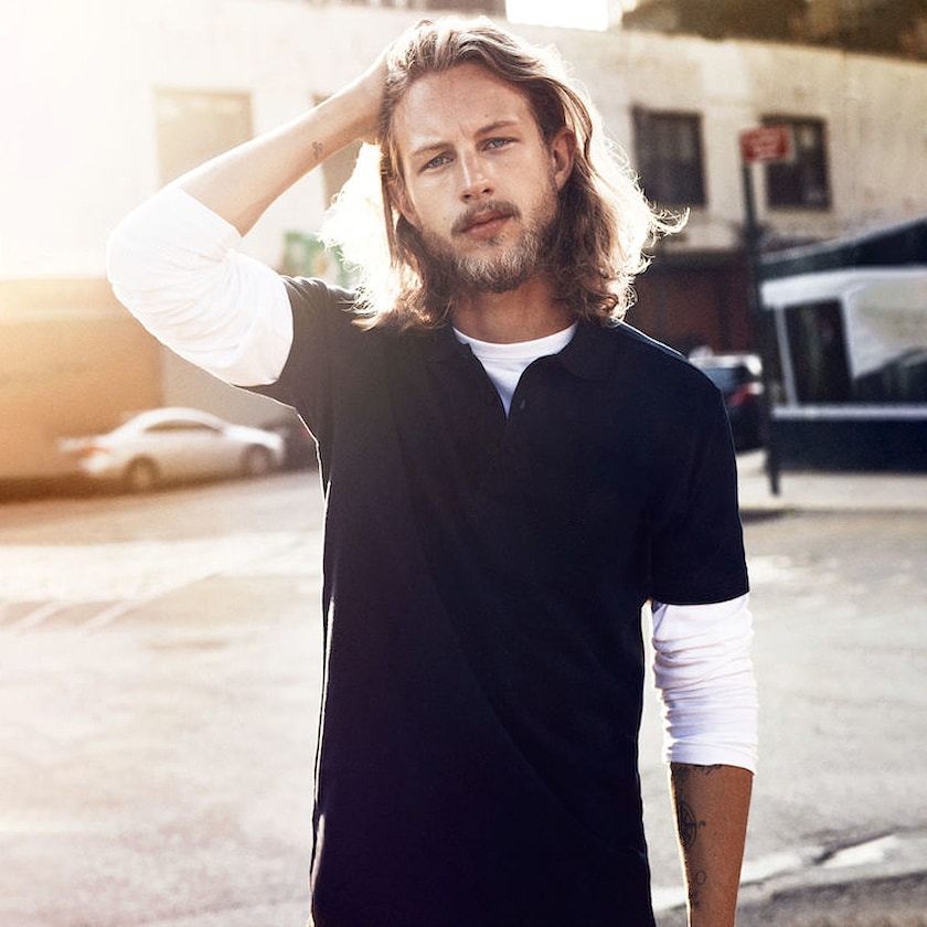 Miesten piképaita kestävästä polyesterisekoitteesta. Edessä kolme nappia.