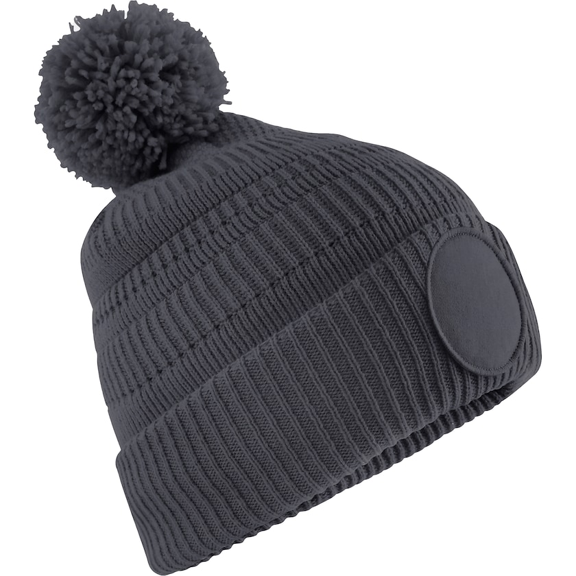 Pipo pyöreällä etiketillä, johon voidaan tehdä painatus. Pipossa on tyylikkäästi suunniteltu kuviollinen kangas, ja se on valmistettu 100 % GRS-sertifioidusta polyesteristä.