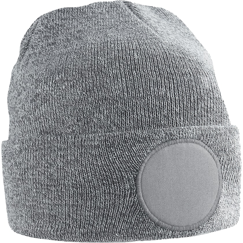 Beanie-pipo, jossa on kangasmerkki brodeerattua logoa varten. Kangasmerkkiin saa hieman yksityiskohtaisempia logoja kuin suoraan joustinnneulokseen.