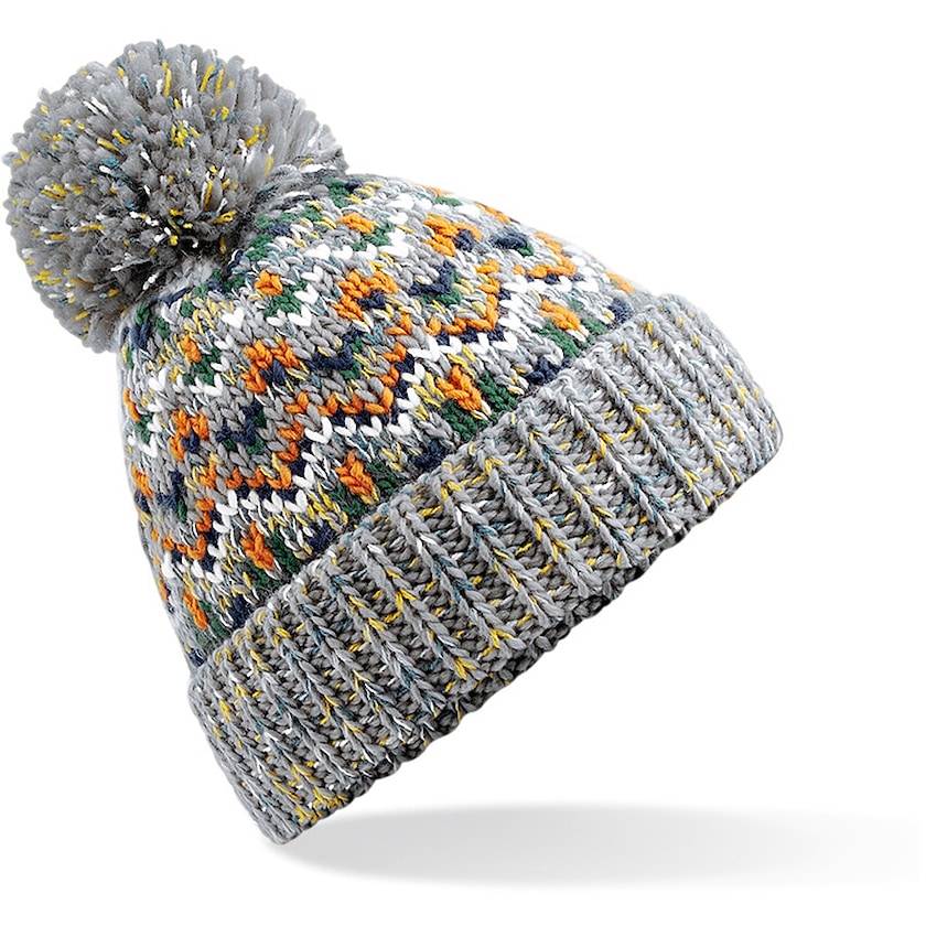 Elegantti beanie-pipo kirjoneulekuviolla. Korkealaatuisessa tupsupipossa on sisällä lämmin vuori.