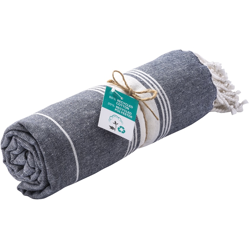 Kauniisti kuvioitu rantapyyhe. Kangas on valmistettu kierrätetyn puuvillan ja polyesterin sekoitteesta. Kesän suosikki!