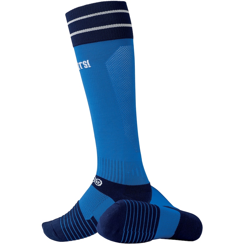 Neulottu jalkapallosukka omalla designilla. Sukassa on 360 asteen holvikaarituki sekä joustavat paneelit pohkeessa ja jalkapohjan päällä. Voit valita joko yksinkertaisesti vuoratun sukan tai puolifroteepohjallisen sukan, joka tarjoaa lisää iskunvaimennusta. Yksinkertaisesti vuorattu sukka on valmistettu 95 % polyesteristä ja 5 % elastaanista, ja puolifroteepohjallinen sukka 75 % polyesteristä, 17 % puuvillasta ja 8 % elastaanista. Kangas kudotaan täysin toiveidesi mukaan, ja siinä voi olla enintään viisi väriä. Valittavana ovat koot 36-39, 40-43 ja 44-46. Saat itse päättää kokojakauman (vähintään 50 paria per koko). Hintaan sisältyy pahvinen etiketti omalla designilla (yksi toteutustapa).
