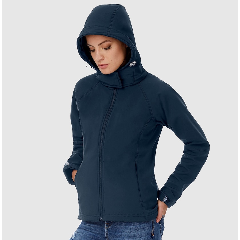 Naisten softshell-takki hupulla. Takki on valmistettu kolmikerroksisesta kankaasta, ja se on vedenpitävä mutta hengittävä. Sen sisäpuolella on miellyttävä fleecevuori. Huppu on irroitettava. Loistava takki Suomen vaihteleviin sääolosuhteisiin! Saatavilla myös miesten mallina.