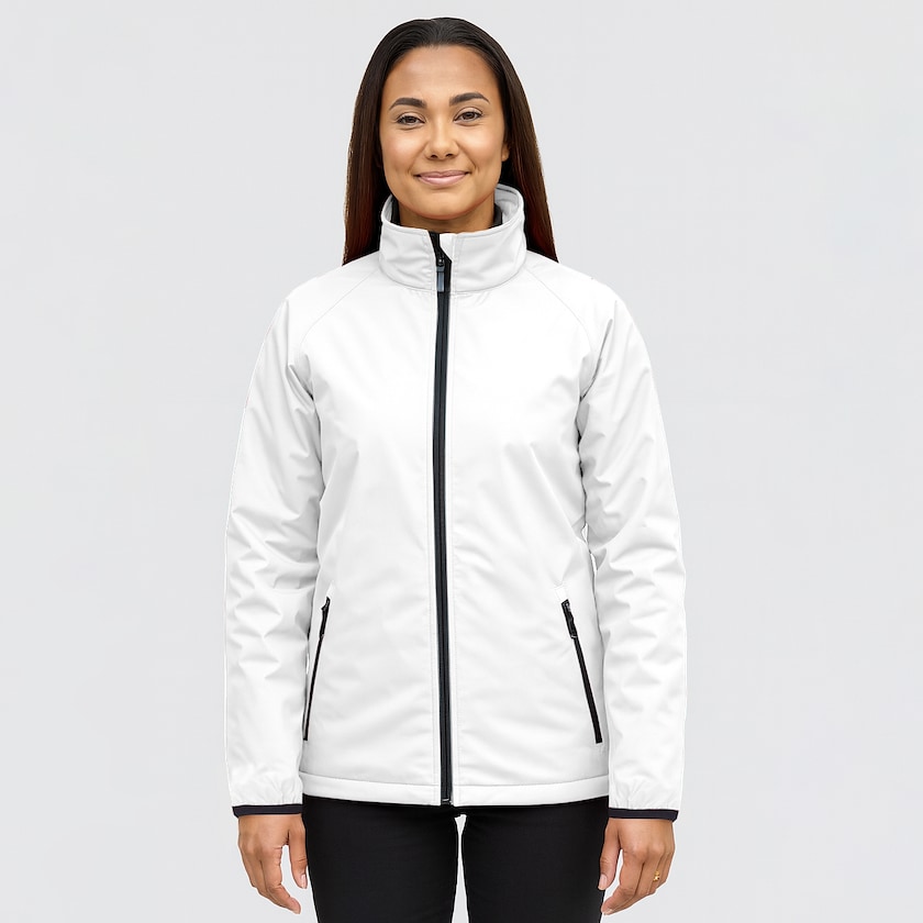 Hupulla varustettu kevyt naisten takki kosteutta hylkivästä kankaasta. Takissa on vetoketjulliset sivutaskut ja sisäpuolella povitasku. Saatavilla myös miesten mallina.