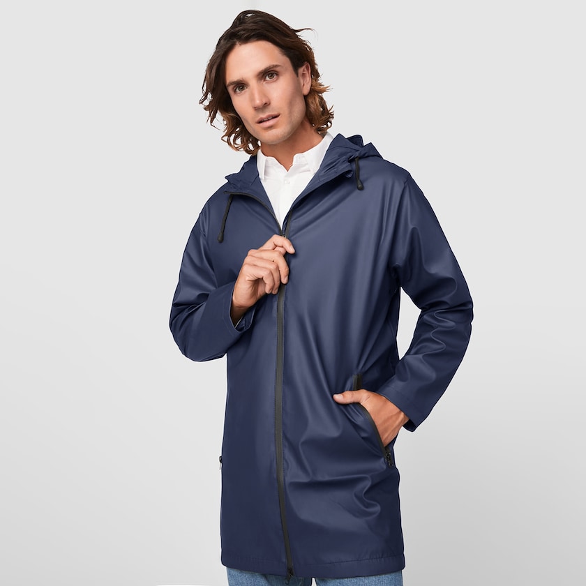 Miesten mallinen sadetakki hupulla. Sadetakki on vedenpitävä ja siinä on kaksi vetoketjullista sivutaskua. Rolyn koot ovat pieniä, joten ota rohkeasti kokoa suurempi, jos olet tavallisesti kahden koon välillä. Saatavilla myös naisten mallina.