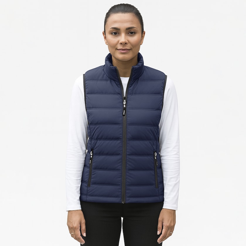 Ympäristöystävällinen toppaliivi naisille. Liivissä on vetoketjutaskut. Liivin kangas on 100% polyesteriä, ja täyte 90% kierrätettyä untuvaa ja 10% kierrätettyjä höyheniä. Saatavilla myös miesten mallina.