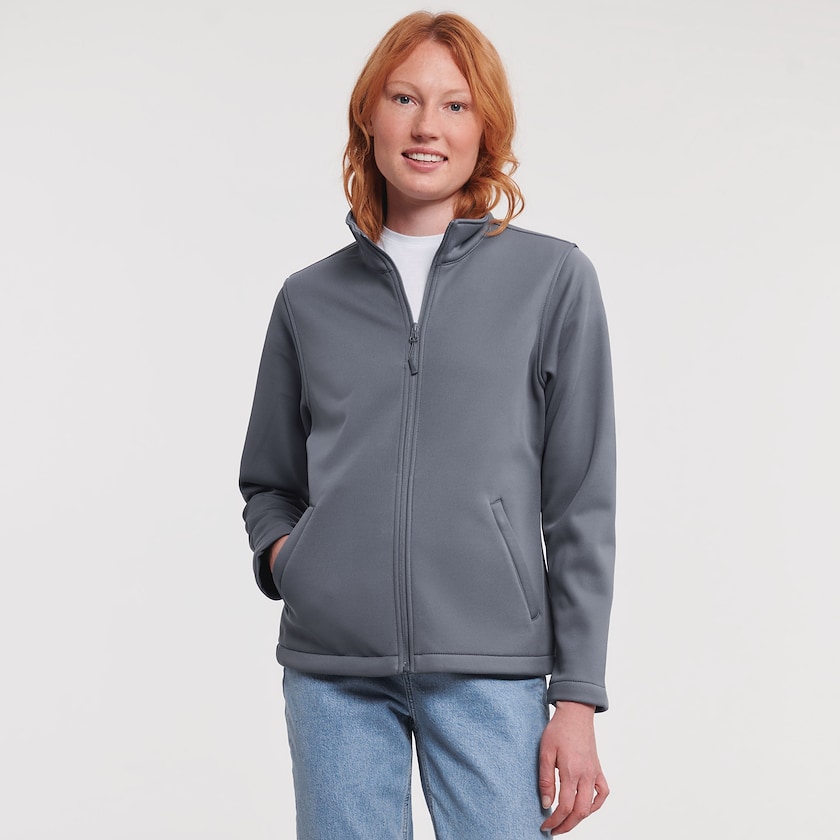 Laadukas, hengittävästä materiaalista valmistettu Soft Shell -verryttelytakki, neljä värivaihtoehtoa. Vettähylkivä Teflon®-pinta. Kapea naisten malli. Sivuilla vetoketjulliset taskut, sisällä pehmeä, lämmin fleecevuori. Takki on kustomoitavissa brodeerauksella tai 1-4-värisellä painatuksella. Pieni minimitilausmäärä. Saatavilla myös miesten mallina.