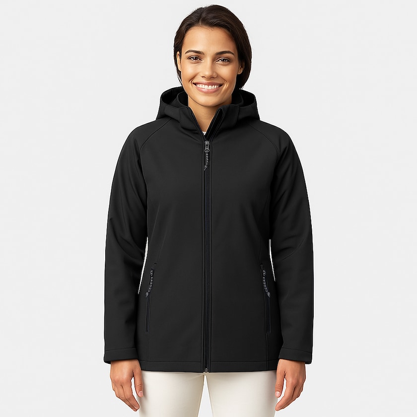 Moderni softshell-takki naisille. Takissa on moderni muotoilu, irrotettava huppu ja istuva muoto. Sivutaskuissa ja hihataskuissa on vetoketjut. Sisällä on isompi sisätasku. Saatavilla myös miesten mallina.