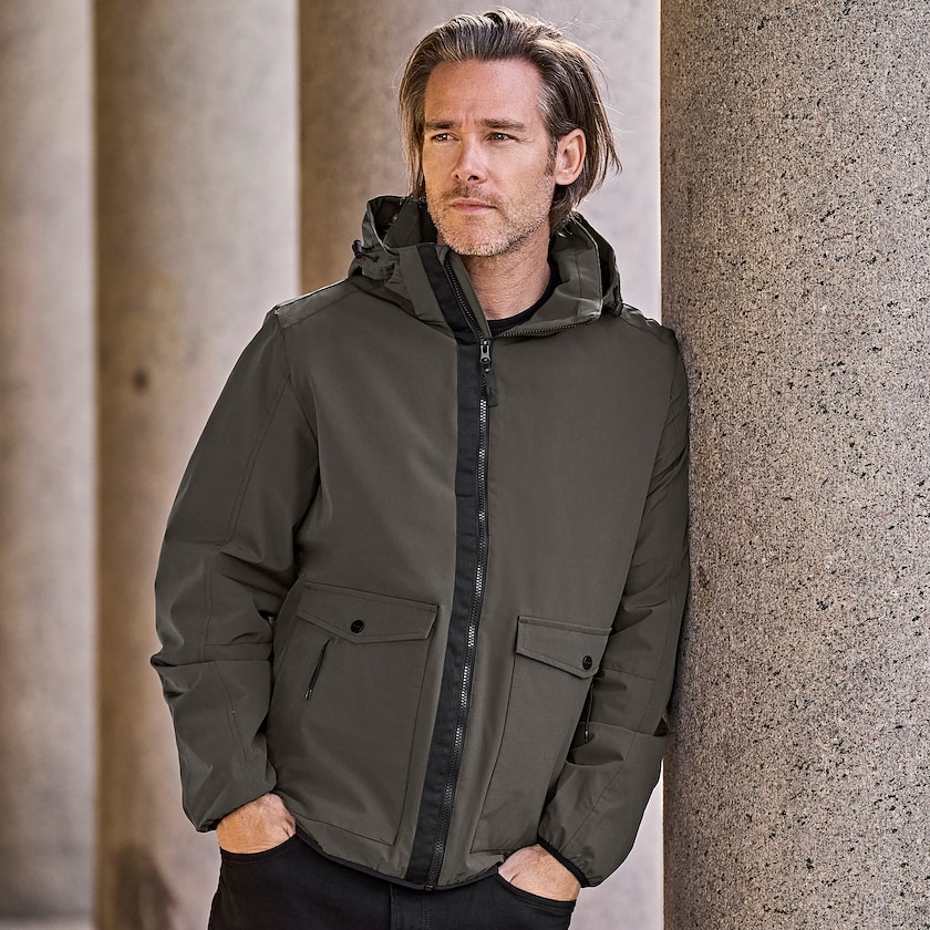 Sporttinen takki korkealla kauluksella. Laadukas takki on merkiltään Tee Jays. Takissa on vettähylkivä kuorikangas ja laadukas DuPont™-vuori. Huppu on irroitettava. Takin etupuolella on kaksi taskua painonapeilla. Yksinkertaisen tyylikäs takki on kustomoitavissa painatuksella tai brodeerauksella. Saatavilla myös naisten mallina.