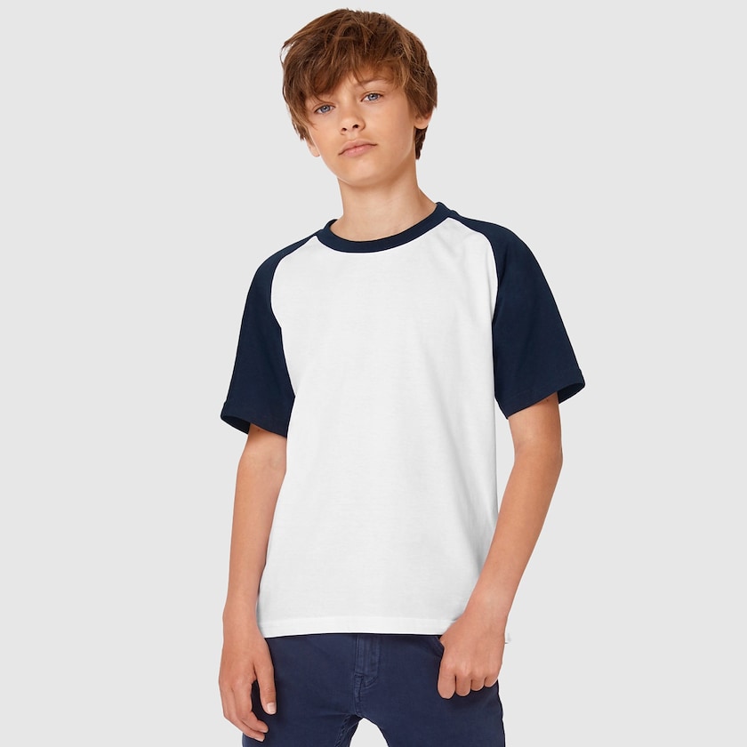 Baseball t-paita kaikenikäisille lapsille. Paidat toimitetaan yksittäispakattuina muovipusseissa.