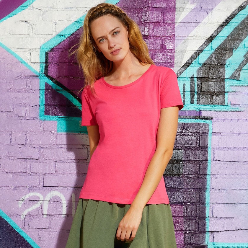 100% luomupuuvillasta valmistettu naisten T-paita, muotoonommeltu malli. Seitsemän värivaihtoehtoa. Paitoihin saatavilla kustomoitu logo- tai tekstipainatus max. 4:llä värillä. Tuotteet toimitetaan yksittäispakattuina muovipusseissa. Saatavilla myös miesten mallina.
