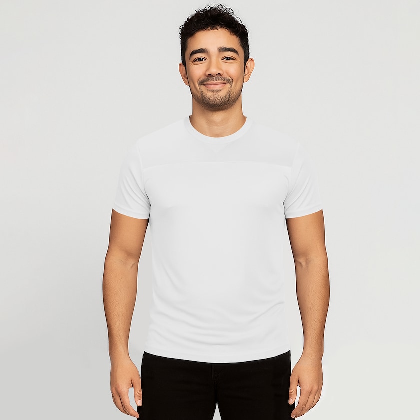 Ympäristöystävällinen miesten urheilupaita. Paidan kangas on 90% kierrätettyä polyesteriä ja 10% elastaania. Urheilukäyttöön suunnitelty kevyt kangas hengittää ja tuntuu miellyttävältä. Saatavilla myös naisten mallina.