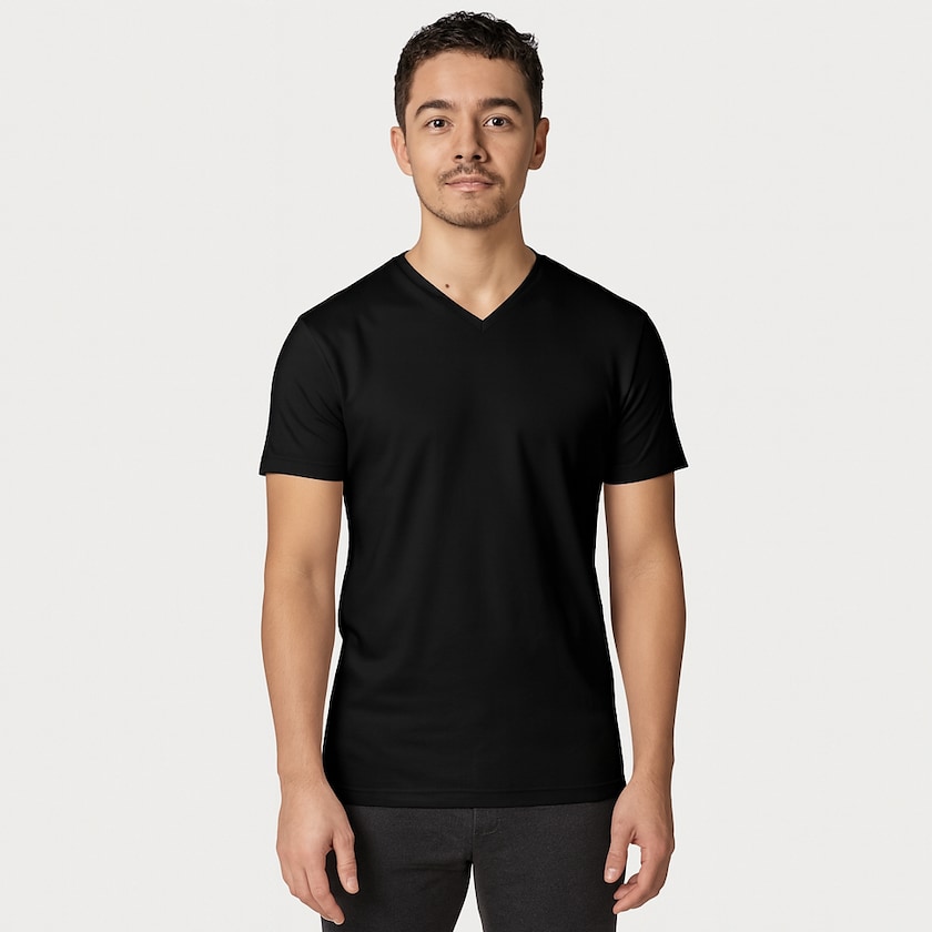 V-aukkoinen T-paita luomupuuvillasta. Materiaalina laadukas 200 gramman puuvillakangas, jossa on 5% elastaania. Saatavilla myös naisten mallina.