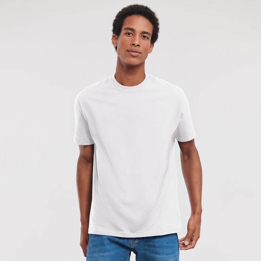 Klassinen t-paita Classic T-shirt 180M merkiltä Russell. Tapansa mukaan Russell on valmistanut laadukkaan t-paidan huippuhintaan. T-paidat eivät pane pahakseen rumpukuivausta. Toimitetaan yksittäispakattuina.