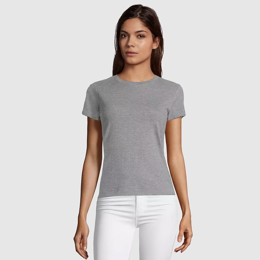Muotoonleikattu naisten T-paita merkiltä SOL's. Materiaalina 150 gramman puuvilla, jolla on ÖKO-TEX-sertifikaatti. Paidassa on normaalia pienemmät koot. Saatavilla myös miesten mallina.