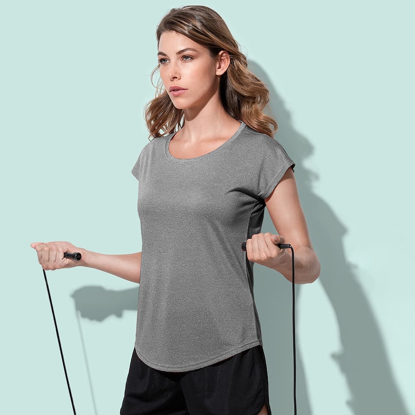 Urheiluun tarkoitettu T-paita kierrätysmateriaaleista. T-paidan materiaalina on ACTIVE DRY-polyesteri, josta 50% on kierrätetyspolyesteriä. ACTIVE DRY-materiaali sopii erinomaisesti urheiluun, koska se poistaa kosteutta iholta. Saatavilla myös miesten mallina.