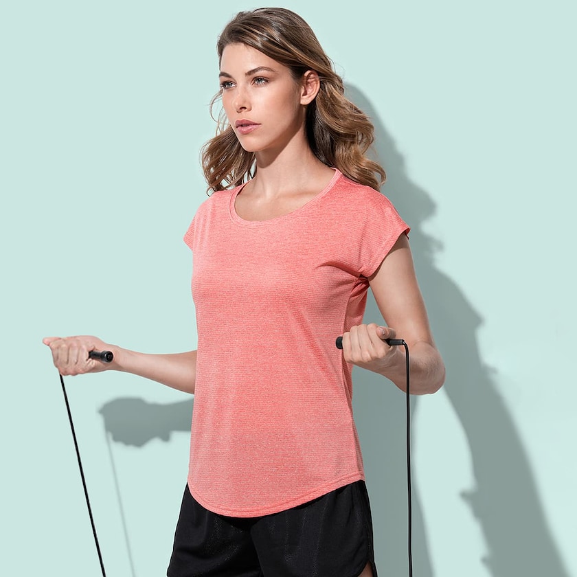 Urheiluun tarkoitettu T-paita kierrätysmateriaaleista. T-paidan materiaalina on ACTIVE DRY-polyesteri, josta 50% on kierrätetyspolyesteriä. ACTIVE DRY-materiaali sopii erinomaisesti urheiluun, koska se poistaa kosteutta iholta. Saatavilla myös miesten mallina.