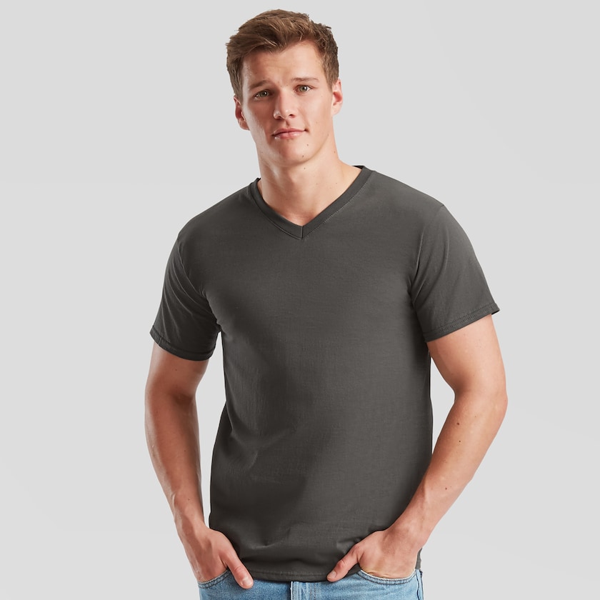 Hintansa arvoinen Fruit of the Loom v-aukkoinen t-paita. Paidat toimitetaan yksittäispakattuina muovipusseissa. Saatavilla myös naisten mallina.