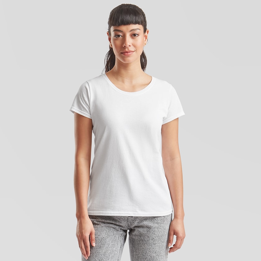 Fruit of the Loom v-aukkoinen t-paita naisille Paidat toimitetaan yksittäispakattuina muovipusseissa. Saatavilla myös miesten mallina.