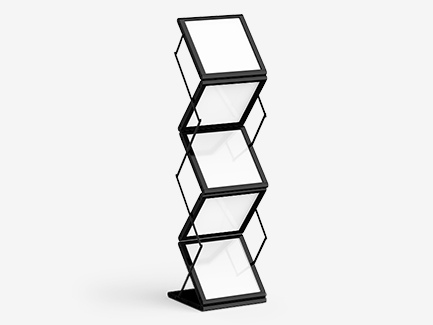 Esitetelineissämme on erilaisia rakenteita ja ominaisuuksia. Niillä kaikilla on pystysuuntainen taittomekanismi, joka tuo esitteet hyvin näkyville ja helposti saataville. Taitettuna esiteteline mahtuu mukaan tulevaan kuljetuslaukkuun, mikä tekee sen siirtämisestä vaivatonta.