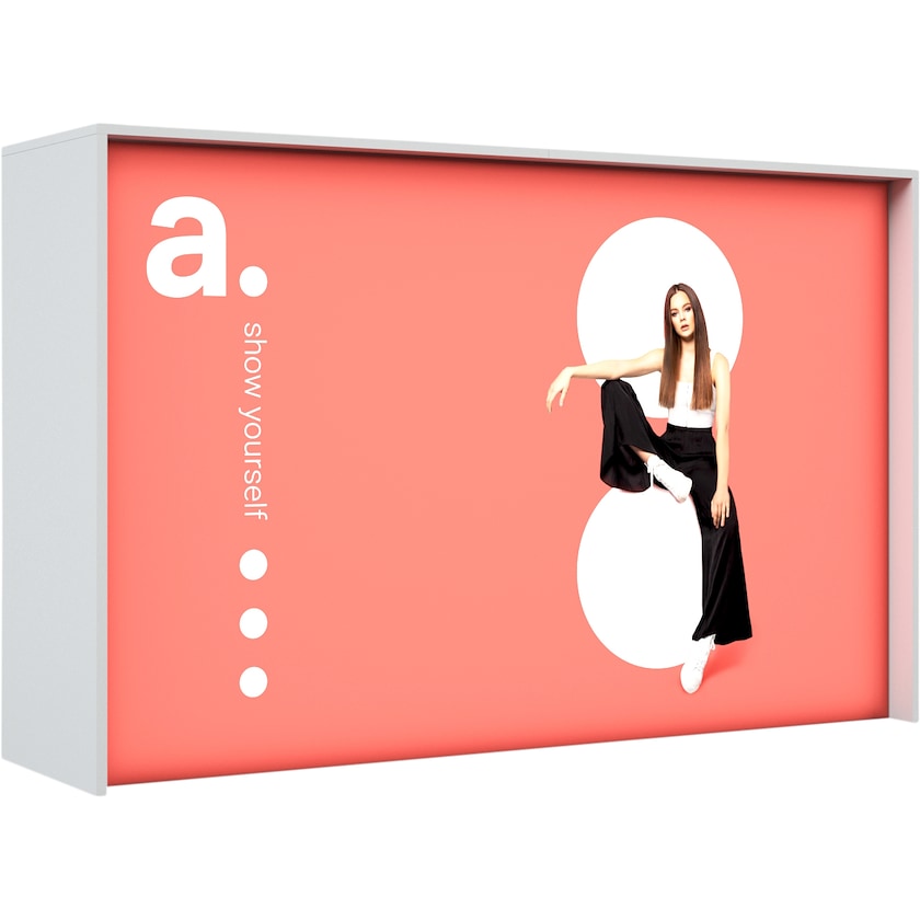 LED-valaistu messupöytä, jonka koko on 150 cm. Messupöydässä on fiksu LED-valaistu rakenne, joka saa logosi loistamaan. Pöydän asennus on todella helppoa, eikä vaadi työkaluja. Yhdistä vain osat toisiinsa klikkaamalla ne paikoilleen. Jos haluat myöhemmin muuttaa pöydän ulkonäköä, voit tilata meiltä uuden kankaan eri painatuksella. Mukana säilytyslaukku pyörillä.