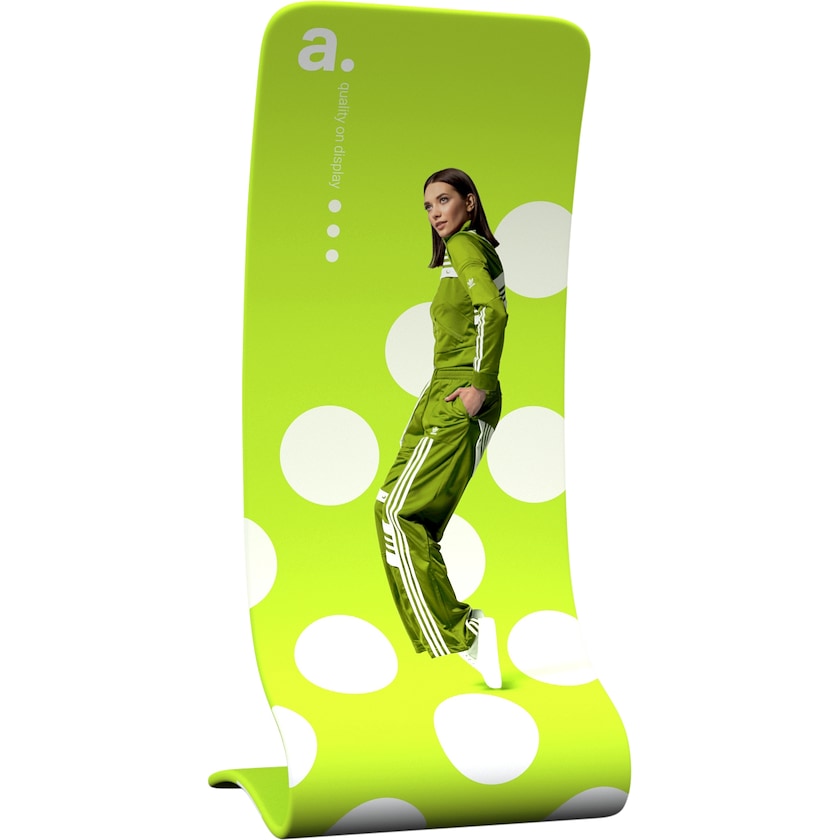Näyttelyseinä jännittävällä S-muodolla. Messuseinän kätevä rakenne koostuu alumiinirungosta, jonka yli vedetään vetoketjulla suljettava kangas. Runko on helppo ja nopea koota ilman työkaluja. Painatus tehdään vesipohjaisilla väreillä seinän etu- ja takapuolille. Kangas on pestävissä 30 asteessa. Jos haluat myöhemmin vaihtaa messuseinän painatuksen toiseen, voit tilata meiltä uuden kankaan samaan runkoon.