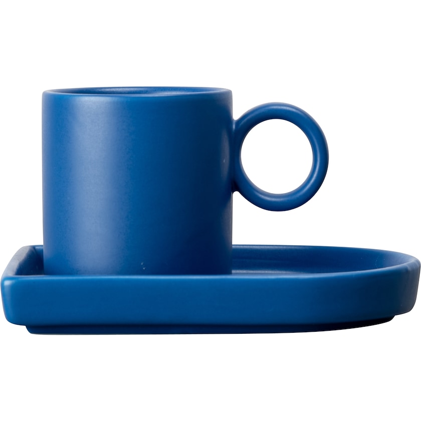 Espressokuppi leikkisästi suunnitellulla asetilla. Setti on valmistettu korkealaatuisesta posliinista. Kupin minimalistinen muotoilu ja ylisuuri korva luovat leikkisän ilmeen. Toimiston suosikki!