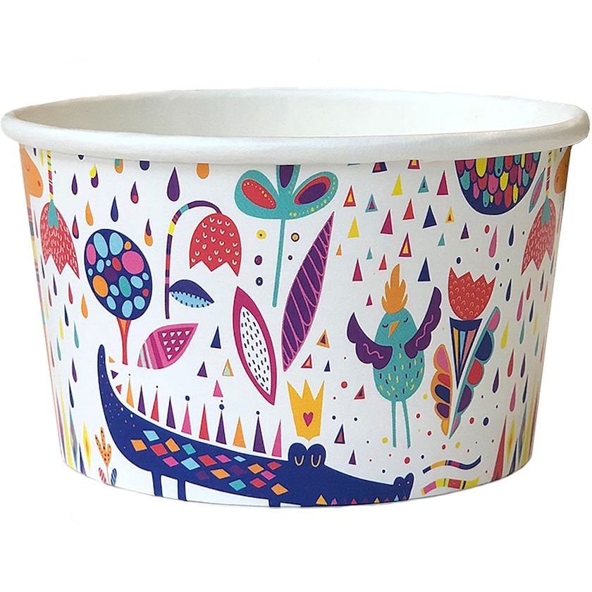 24 cl jäätelöpikari paperista. Koko astian ympärille saa valokuvatasoisen printin. Materiaalina on paperi FSC-merkityistä metsistä.