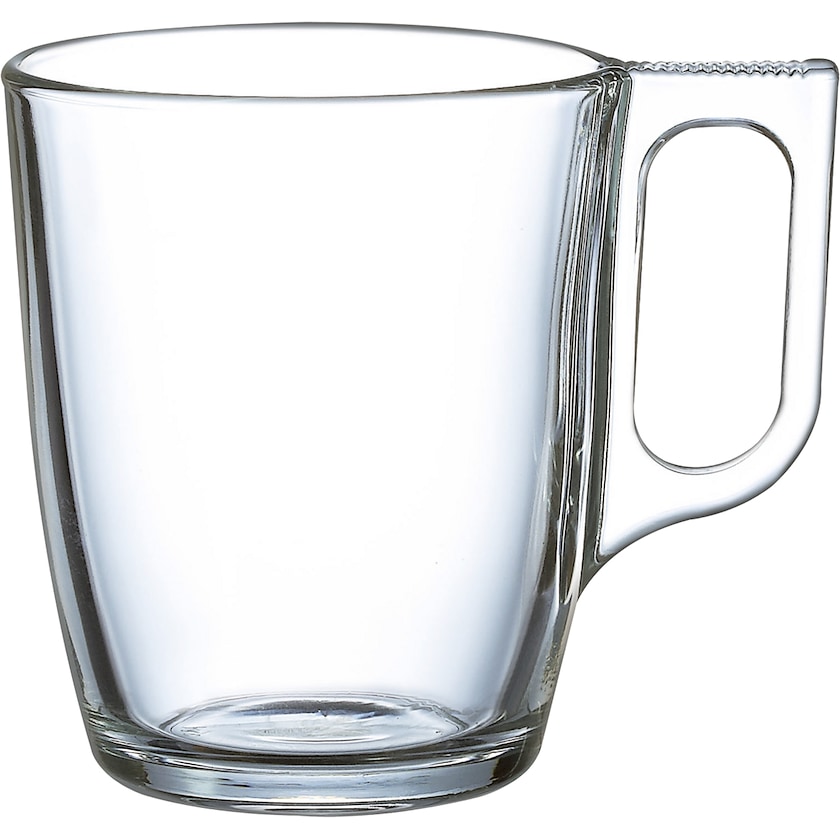 Lasimuki, jossa on tunnusomainen kahva. Valmistettu korkealaatuisesta, karkaistusta lasista, joka sopii erinomaisesti kahville ja teelle. Kestää konepesun ja mikron. Valmistettu Euroopassa.