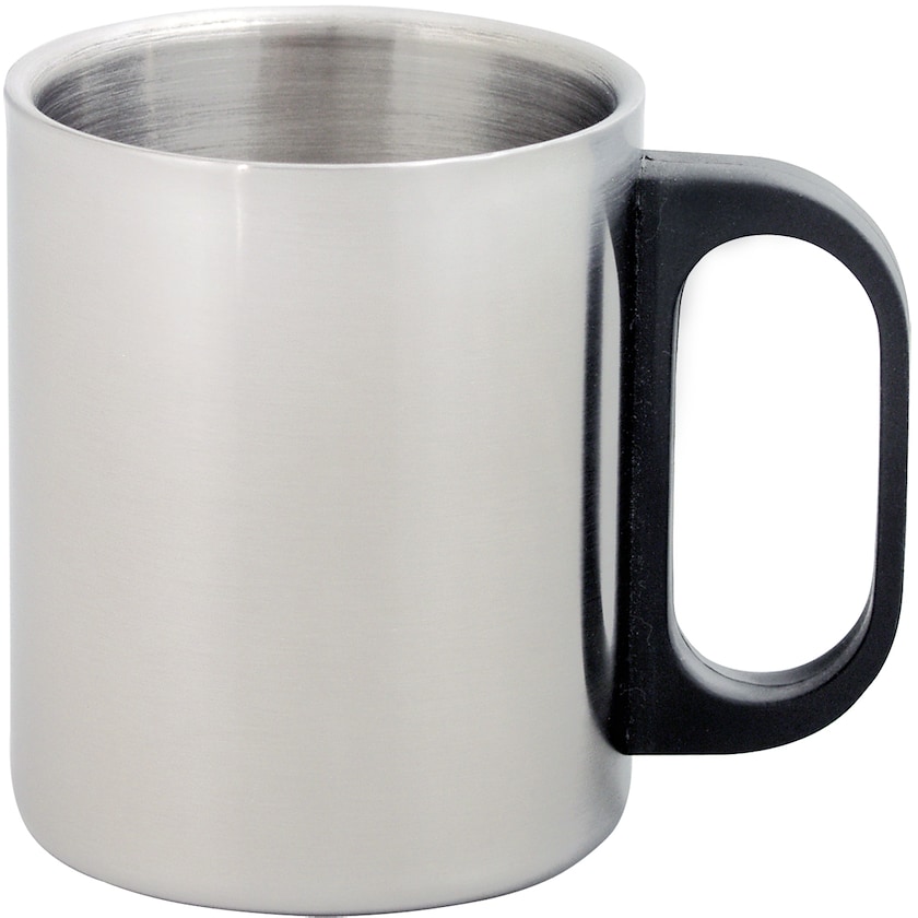 Kestävä metallimuki, jossa on mukava muovinen kädensija. Merkitseminen voidaan tehdä painamalla korkeintaan kahdella värillä tai laserkaiverruksella.