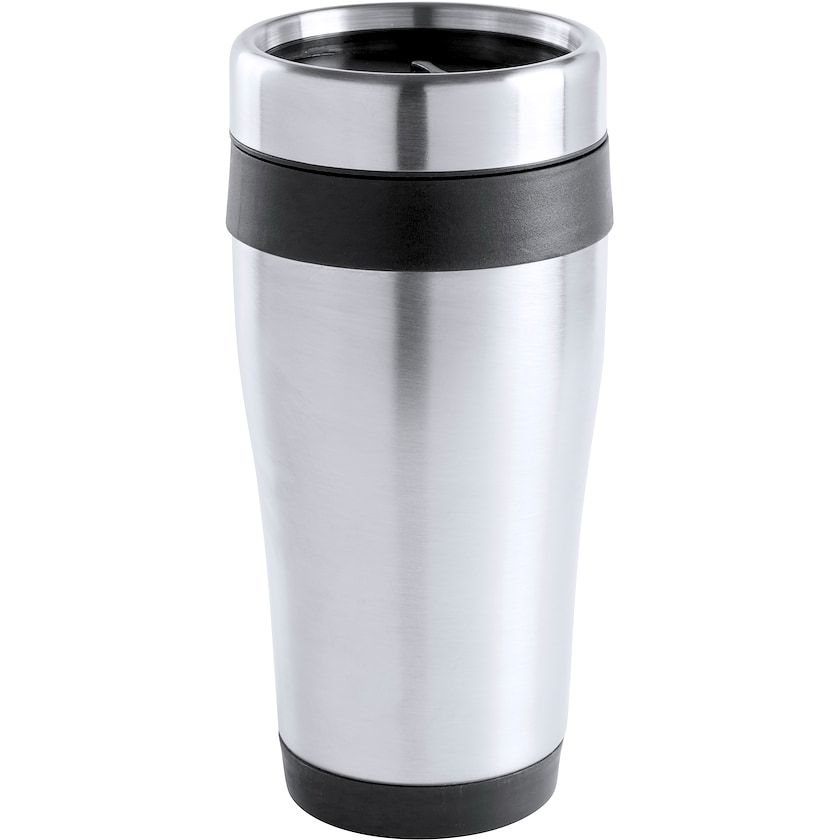 Ruostumattomasta teräksestä valmistettu termosmuki. Mukin sisus ja yksityiskohdat ovat elintarvikelpoista muovia. Valitse mieleisesi kuudesta värivaihtoehdosta. Mukiin voidaan tehdä joko laserkaiverrus tai yksiväripainatus valitsemallasi Pantone-kartan sävyllä. Mukit toimitetaan yksittäispakattuina pahvilaatikoissa.