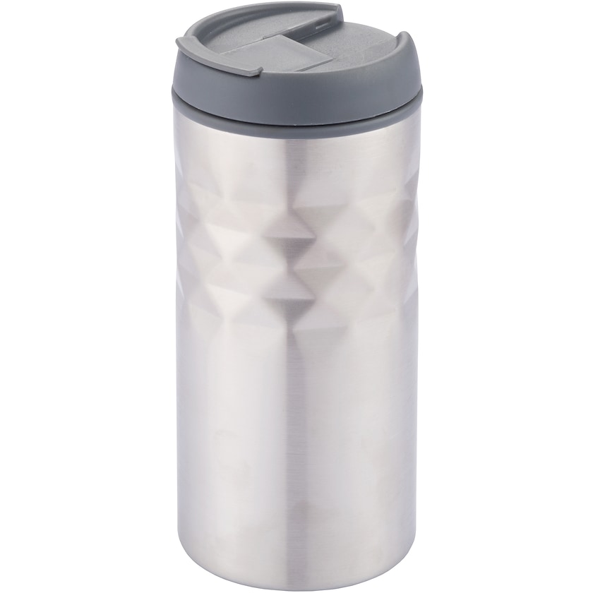 Ruostumattomasta teräksestä valmistettu matkamuki, jonka rungossa tyylikäs geometrinen kuviointi. Mukin tilavuus on 30 cl. Värivaihtoehtoina mattamusta tai hopeanharmaa. Rekisteröity design®. Tähän tuotteeseen on saatavilla joko 1-4-väripainatus tai laserkaiverrus. Yksittäispakatut mukit toimitetaan siisteissä lahjalaatikoissa.