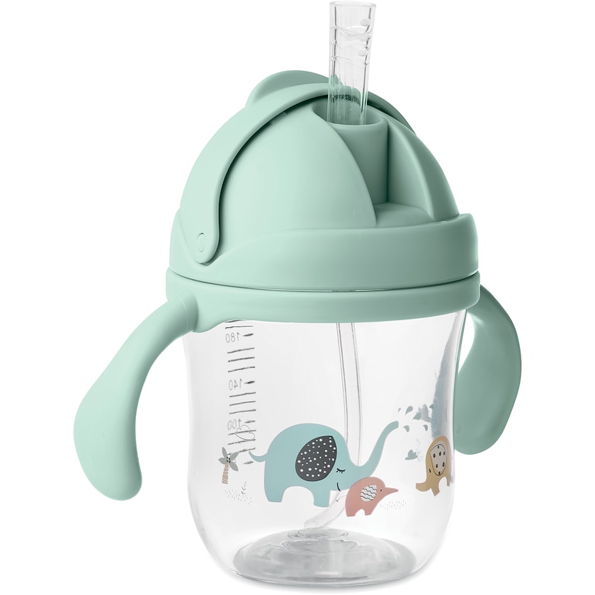 Vauvan pillimuki painatuksella. Mukissa on käytännöllinen kansi ja taittuva pilli. Valmistettu tritan-muovista.