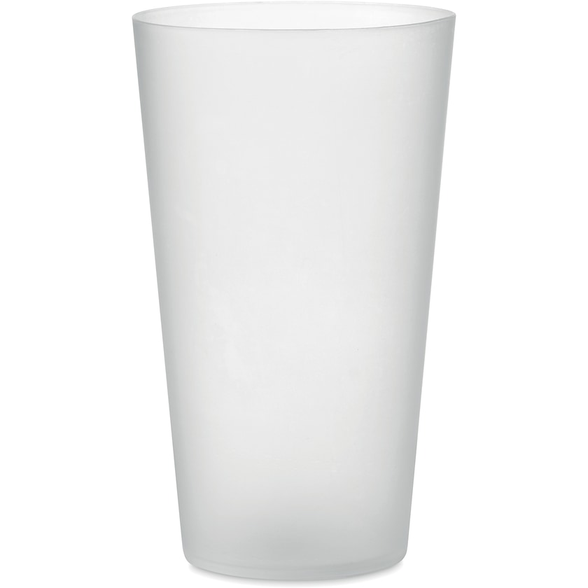 Huurremuovinen muki omalla painatuksella. Mukin tilavuus on 55 cl ja se on valmistettu polypropeenista.