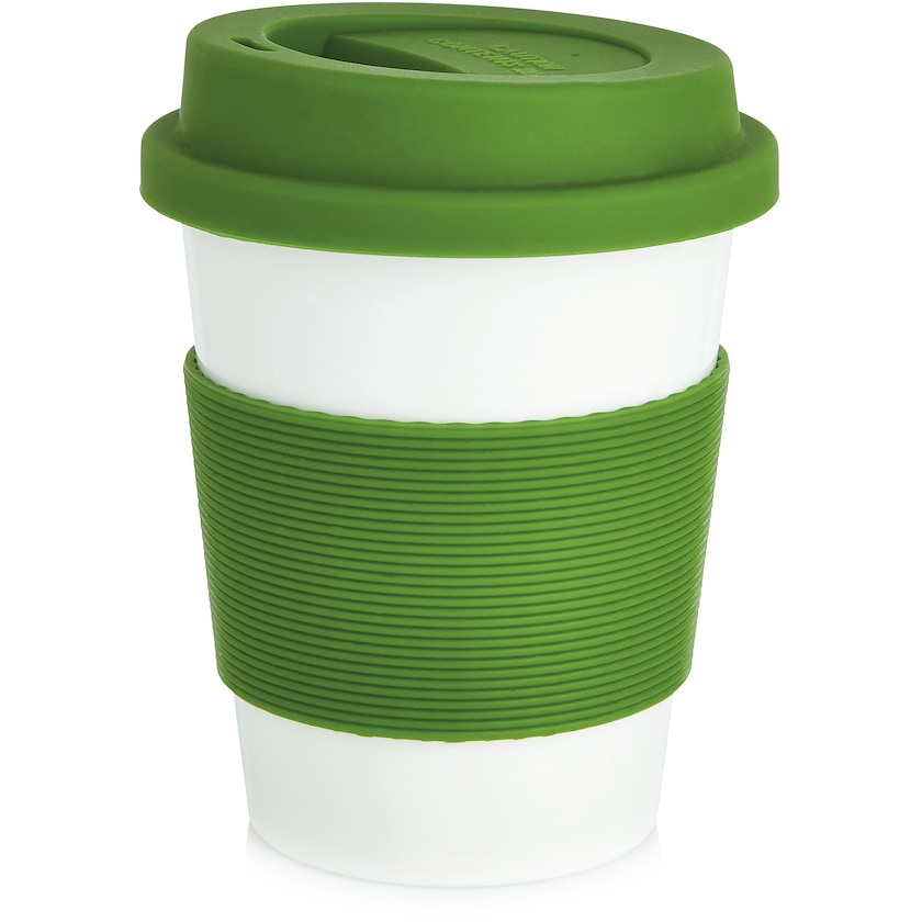 Ympäristöystävällinen take away -muki, joka on biologisesti hajoavaa PLA-materiaalia. Mukissa on silikoninen ympärys ja kansi. Mukin voi pestä astianpesukoneessa ja se kestää mikrossa lämmittämisen (max. 120°C).