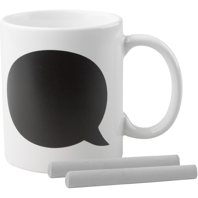 Kirjoita hauska viesti mukin puhekuplaan! Mukana kaksi taululiitua.