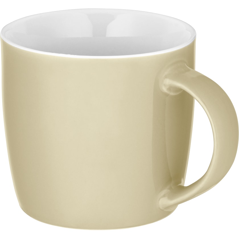Kestävä ja edullinen savimuki, mahdollisuus painattaa mukin sisäpuolelle.