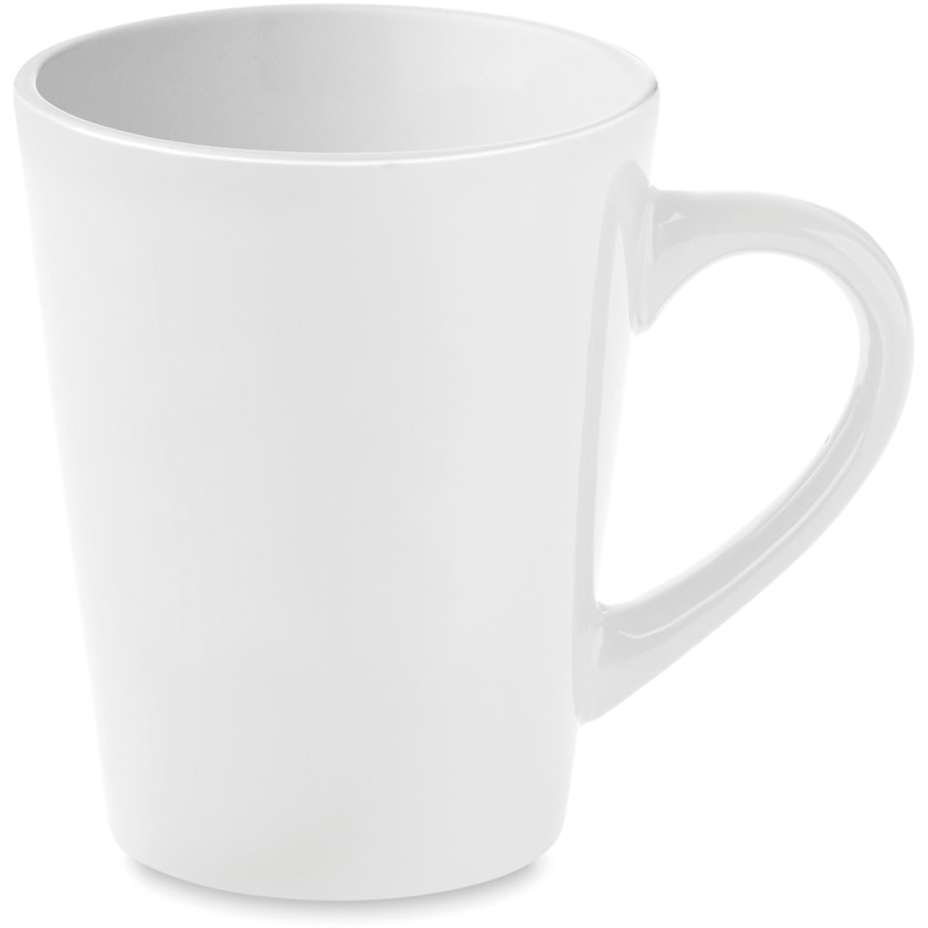 Keraaminen muki suurella painoalalla. Painatuksen saa halutessaan myös mukin sisäpuolelle, ja tällöin painoalan koko on 120 x 20 mm. Mukit toimitetaan yksittäispakattuina valkoisissa kartonkipakkauksissa.